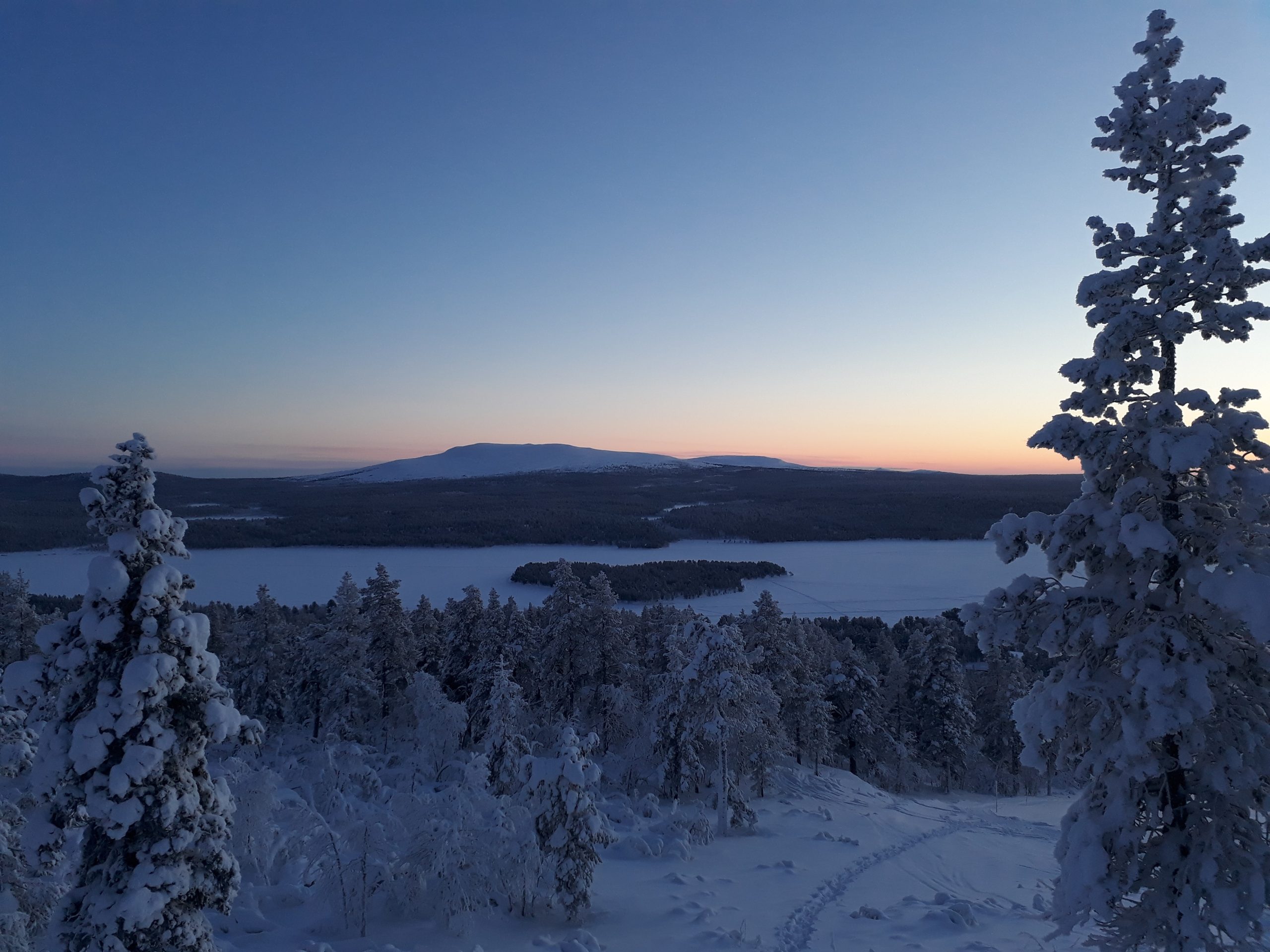 Come and join us for a daylight snowshoe walk in the snowy forest surroundings of the winter wonderland of Jyppyrä Hill! Starting from the Fell Lapland Visitor Centre, we head up Jyppyrä Hill, which rises to 400 meters above sea-level, and is one of the spiritual worship places of our ancestors. On our way up we make stops to enjoy the beautiful scenery and have time for taking photographs. On a special lookout point we take a break, enjoying a cup of hot berry juice and a typical homemade Lappish pastry. This is the perfect opportunity to get to know the nature of Lapland and to experience the fun of snowshoe walking!